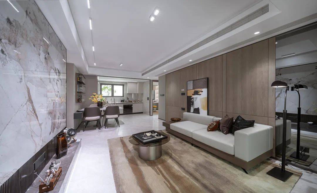 还有更多细节——打动人的关键,往往就藏于这些小细节之中。玄关处加入除臭精灵、LED灯带等细节,除臭杀菌;比如卫浴空间,升级镜柜,植入美妆冰箱、主卫卫洗丽等现代化配置;客厅背景墙岩板,客厅采用金属踢脚线,提升整体质感;厨房空间适配真实烹饪动线,配置直饮净水器、大单槽、360°抽拉龙头等。油烟机采用