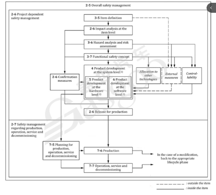 功能安全管理是支撑功能安全流程体系运转的核心,包括公司层级管理、项目层级管理以及生产、运行、服务、报废相关的安全管理。公司层级管理需培育安全文化、建立安全异常管理机制、提升人员能力;项目层级管理需根据项目特点进行裁剪、开展影响分析、分配安全管理角色和职责、编写安全档案、执行认可措施、制定安全计划等;生产、运行、服务和报废阶段的安全管理,需确保设计阶段产生的安全需求在产线得到有效管理、监控和执行,并妥善处理变更。